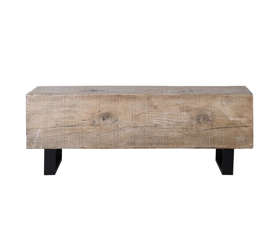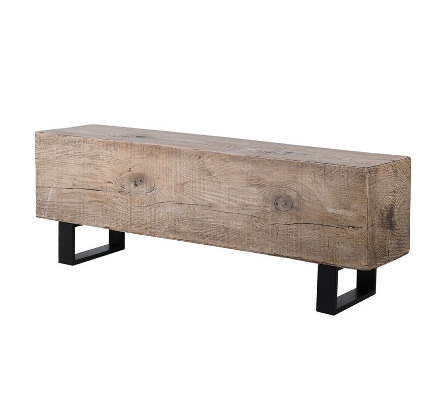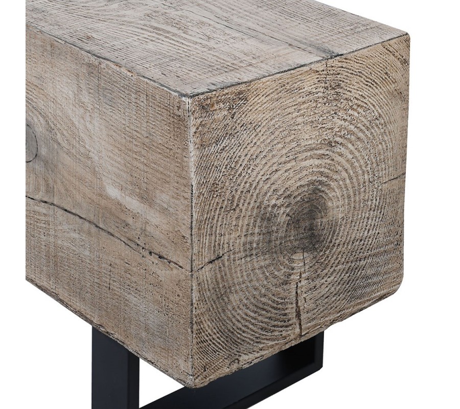 Vrchnú časť lavice tvorí drevený kváder v naturálnej svetlej hnedej farbe. Zdobia ho línie letokruhov v tmavších odtieňoch a nepravidelný povrch, podčiarkujúci organický vizuál. Výrazná štruktúra pôsobí až drsným dojmom, ktorý výborne dopĺňajú kovové nožičky a dodávajú nábytku autentický industriálny vzhľad.