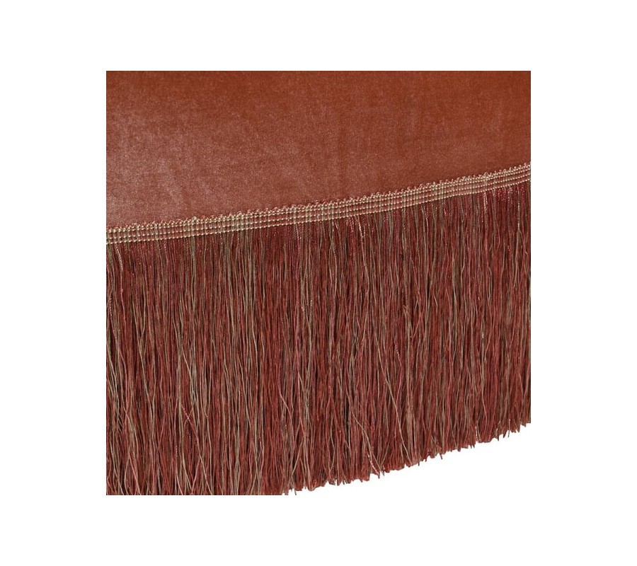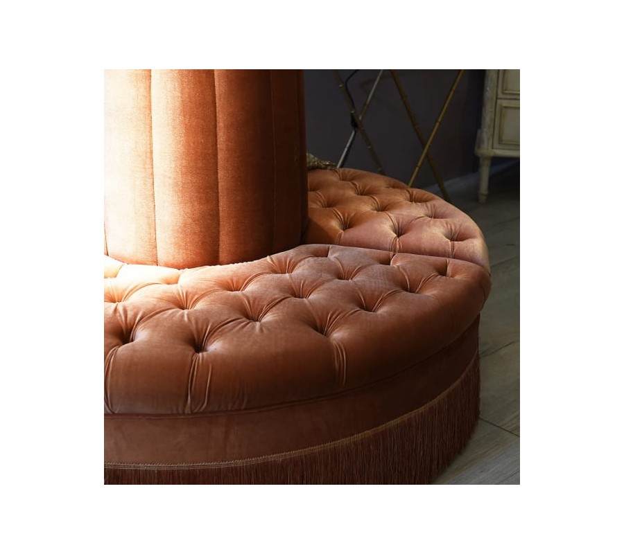 Klasická okrúhla lavica Florence s rustikálnym glamour nádychom so zamatovým tehlovým prešívaným poťahom a strapcami 142 cm