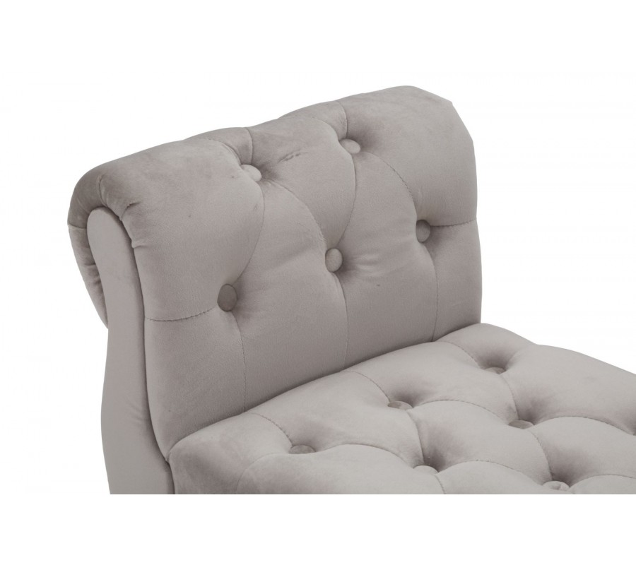 Dizajnová chesterfield lavica Richetti so sivým zamatovým poťahom a zahnutými bočnými opierkami s ozdobným prešívaním 120 cm