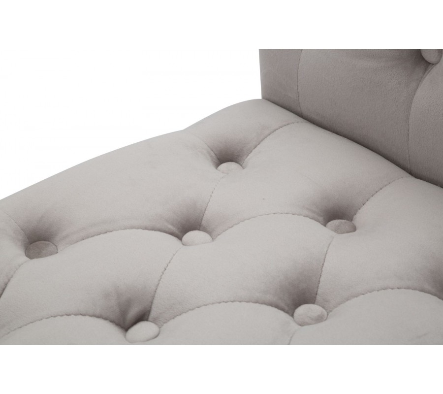 Nízke bočné opierky sú zahnuté a spolu s dekoratívnym prešívaním s hlbokými okrúhlymi gombíkmi dodávajú lavici luxusný chesterfield vzhľad. Klasický dizajn podčiarkuje aj ozdobné zvlnenie spodnej časti sedadla.