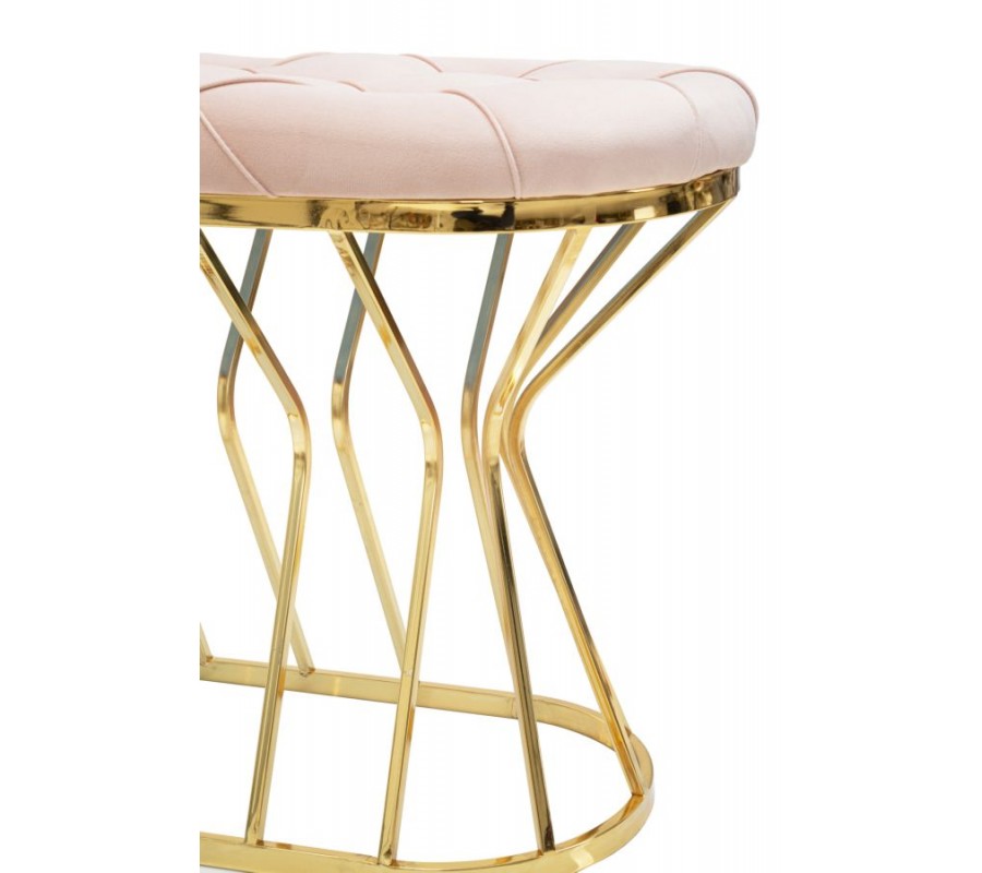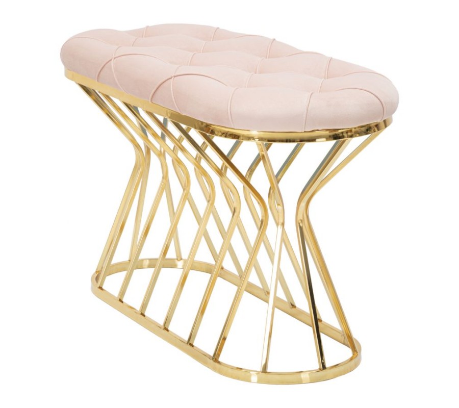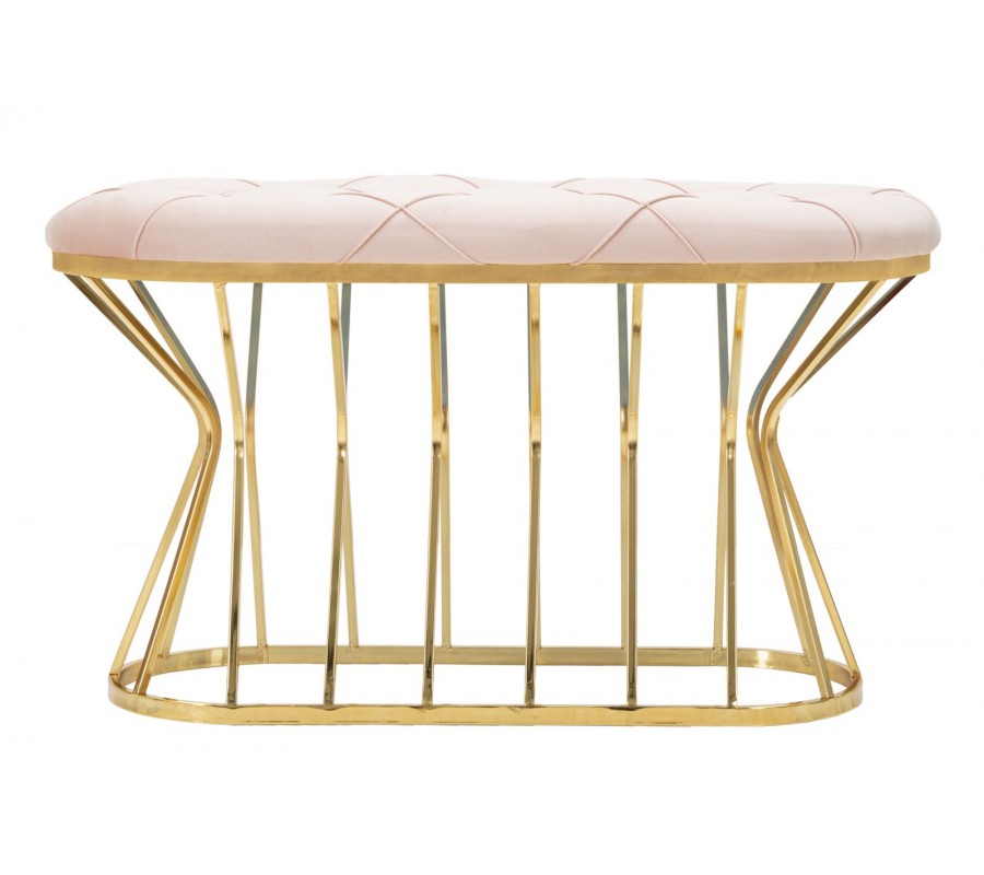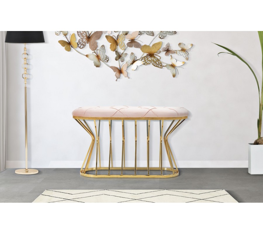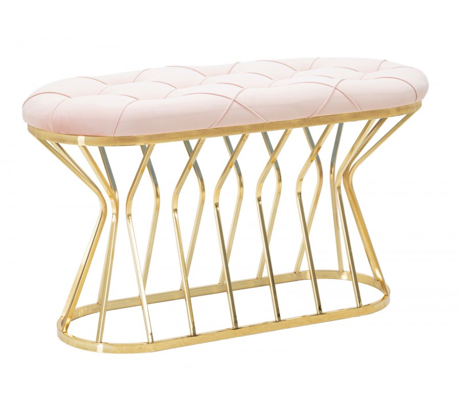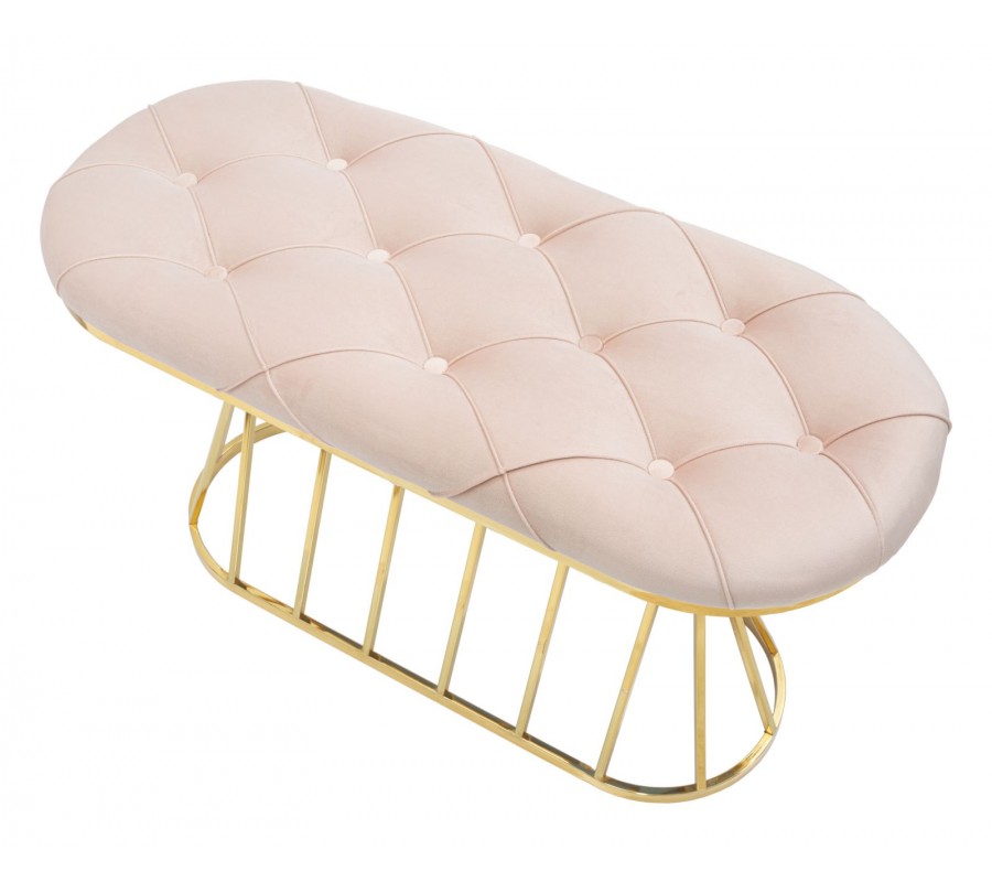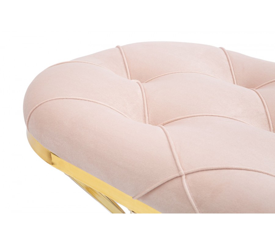 Dizajnová glamour lavica Ziglia so zlatou kovovou podstavou a ružovým čalúneným prešívaným sedadlom 91 cm