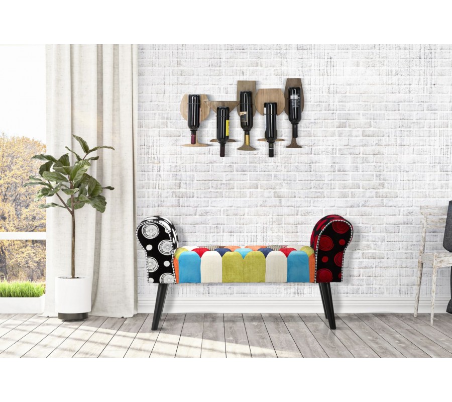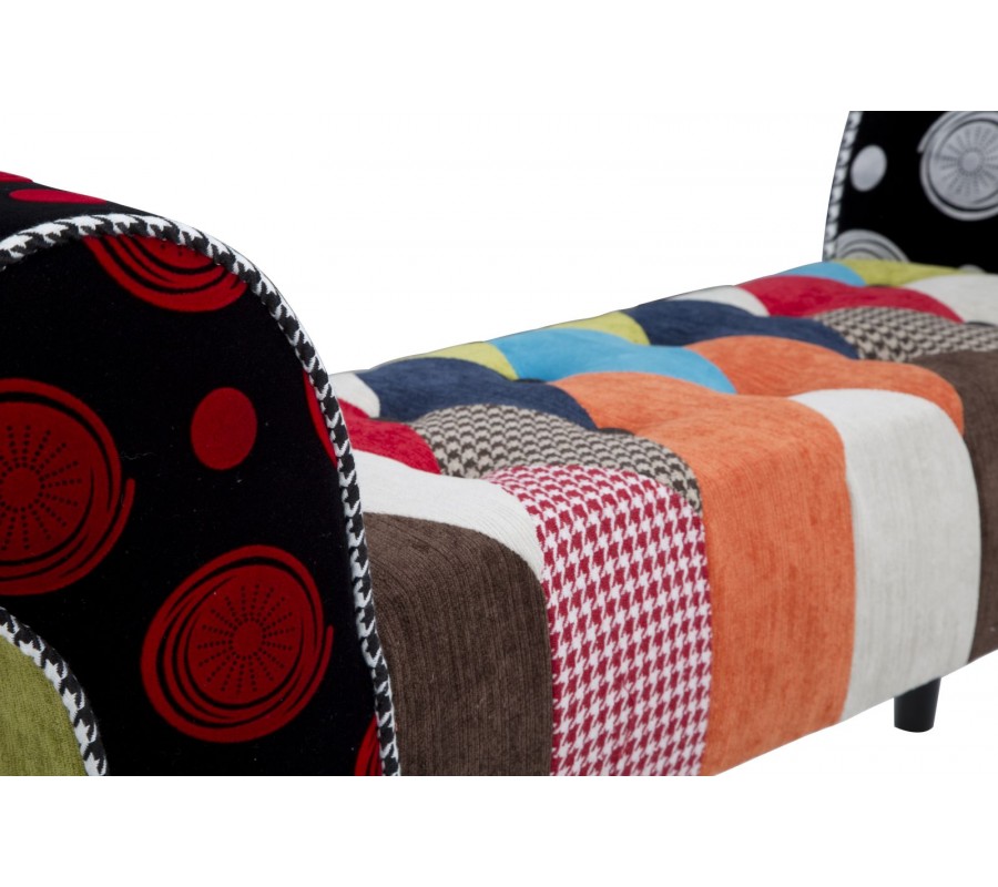 Dizajnová moderná lavica Burlone so zatočenými bočnými opierkami s viacfarebným poťahom s patchworkovým vzorom 102 cm
