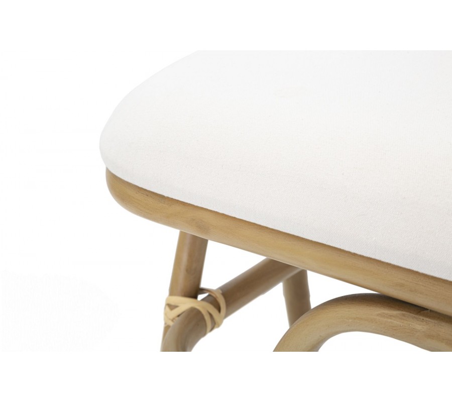 Etno lavica Lania s ratanovým dizajnom je elegantným a funkčným doplnkom interiéru. Má obdĺžnikový tvar a jej čalúnený sedák je potiahnutý textilným bielym poťahom, ktorý pôsobí vzdušne a ľahko.