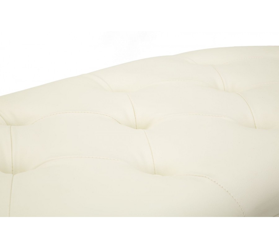 Lavica má oválnu siluetu a jej vrchná časť je vyrobená z kombinácie masívneho a dyhovaného dreva. Povrch pokrýva poťah z ekokože v svetlom krémovo béžovom odtieni. Po obvode ho zdobí prešívanie s diamantovým vzorom. V prednej časti sa nachádzajú dve zásuvky s hladkou prednou stranou a exkluzívnou kryštálovou úchytkou z brúseného skla.