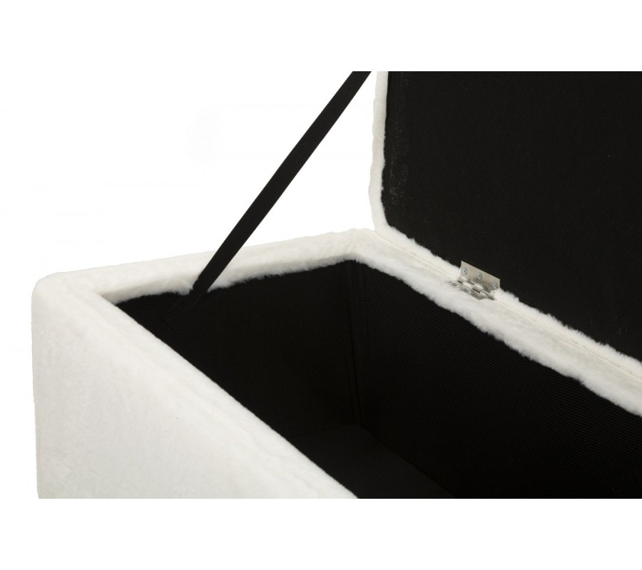 Luxusná lavica Pasil v obdĺžnikovom tvare s bielym zamatovým poťahom je elegantným a praktickým doplnkom do moderného interiéru. Jemne lesklý kožušinový povrch dodáva lavici sofistikovaný vzhľad, pričom hladké línie bez prešívania zdôrazňujú jej minimalistický dizajn. Lavica disponuje úložným priestorom, ktorý sa otvára zdvihnutím sedacej časti, poskytujúc dostatok miesta na odkladanie rôznych predmetov.