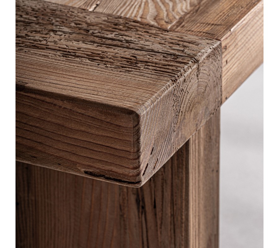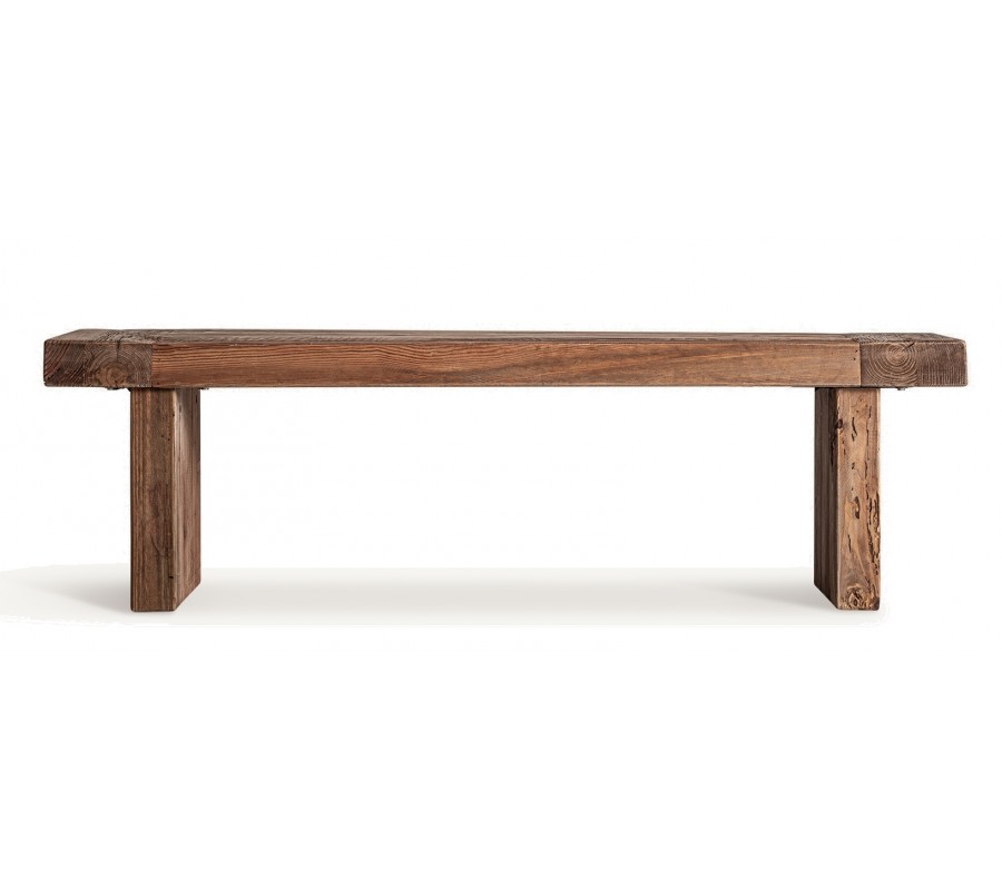 Luxusná vidiecka lavica Lilia je exkluzívny kúsok vyrobený z recyklovaného masívneho dreva, ktoré jej dodáva jedinečný autentický vzhľad s bohatou históriou. Vyznačuje sa rustikálnym nádychom, prírodnou hnedou farbou a výraznou štruktúrou letokruhov, ktoré zdôrazňujú prirodzenú krásu dreva. Obdĺžnikový tvar s mohutnou konštrukciou a pevnými hranatými nohami podčiarkuje jej robustnosť a dlhú životnosť.