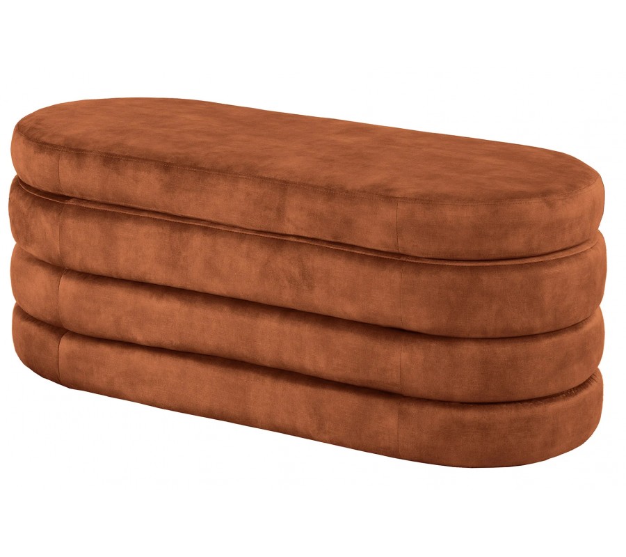 Moderná dvojmiestna oválna zamatová hnedá lavica Eliana s úložným priestorom 113 cm
