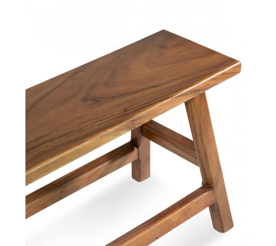 Vidiecka masívna obdĺžniková lavica Sulawesi zo suarového dreva v tmavej hnedej farbe 80 cm