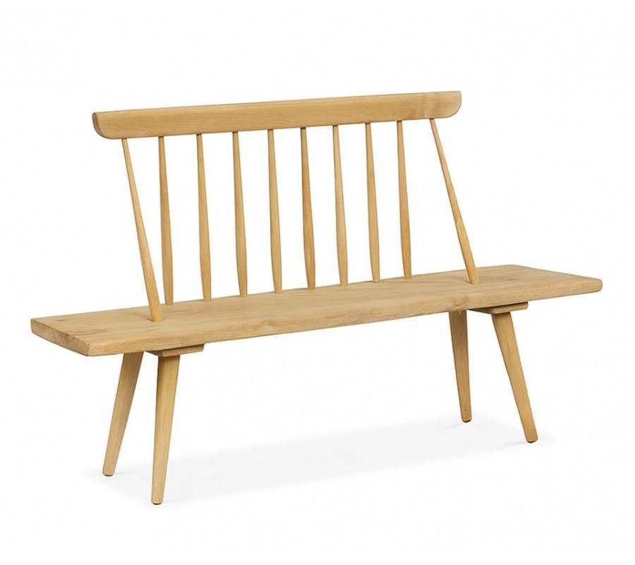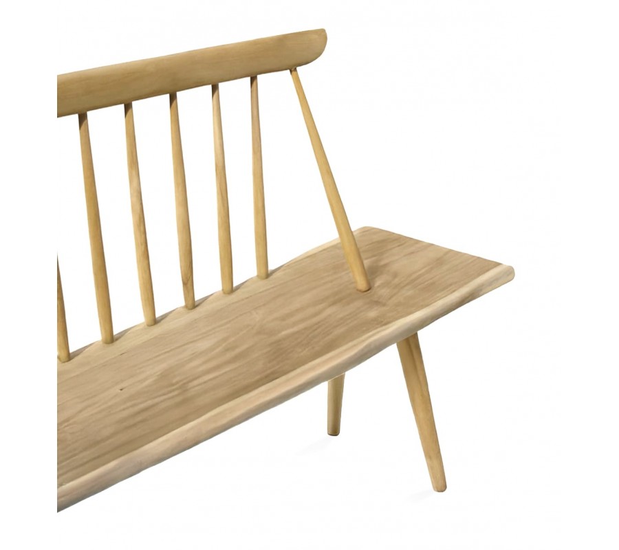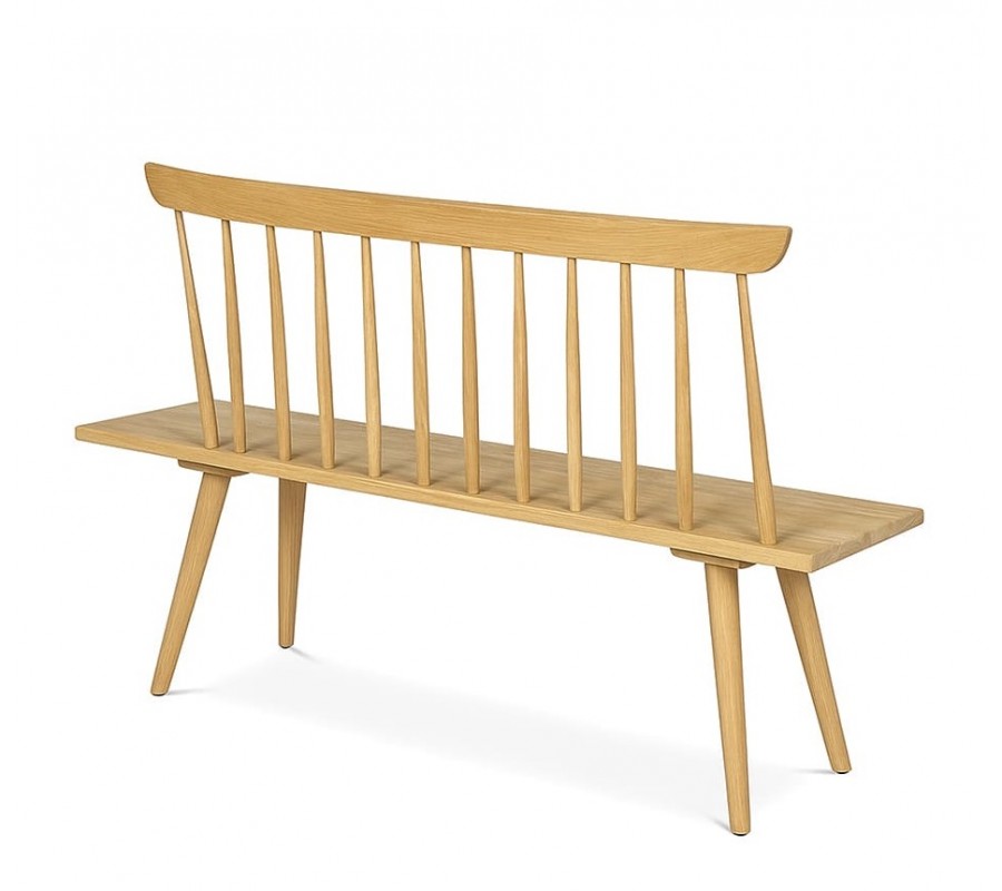 Sedadlo má jednoduchý obdĺžnikový tvar a je položené na štyroch valcovitých nožičkách. Ich zošikmené línie zabezpečujú výbornú stabilitu a zúžený profil v spodnej časti vytvára elegantnú siluetu. Vrchný rám chrbtovej opierky je mierna prehnutý a na okrajoch zaoblený. So zadnou stranou sedadla ho prepája osem rovných tyčí so zúženou vrchnou časťou. Dve diagonálne spojnice na okrajoch sú upevnené v strede sedacej časti a dodávajú lavici originálny avantgardný prvok.