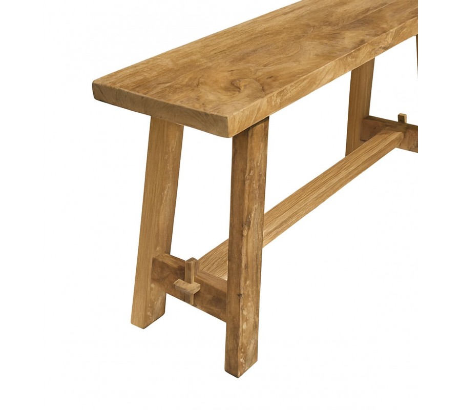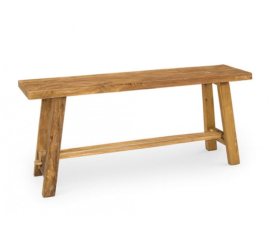 Vidiecka masívna lavica Madero z recyklovaného teakového dreva prináša do interiéru prírodný charakter, typický pre vidiecky štýl bývania. Masívne teakové drevo je mimoriadne pevné, odolné a svojou prirodzenou štruktúrou s farebnými prechodmi v odtieňoch svetlohnedej až medovej farby vytvára jedinečný, teplý a harmonický vzhľad.