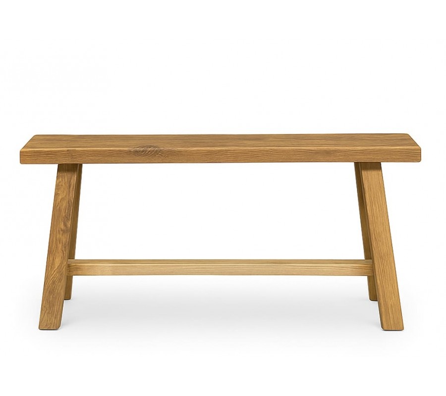 Lavica stojí na šikmo skosených nohách, ktoré sa smerom nadol mierne rozširujú pre stabilitu a tradičný vidiecky výraz. Stredovú časť spája vodorovná priečka.