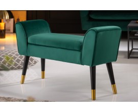 Art-deco štýlová lavica Karen so zeleným zamatovým poťahom 90cm