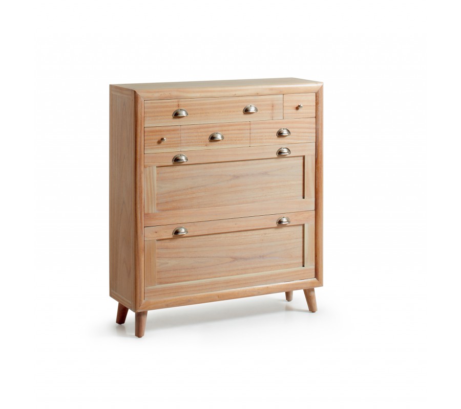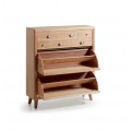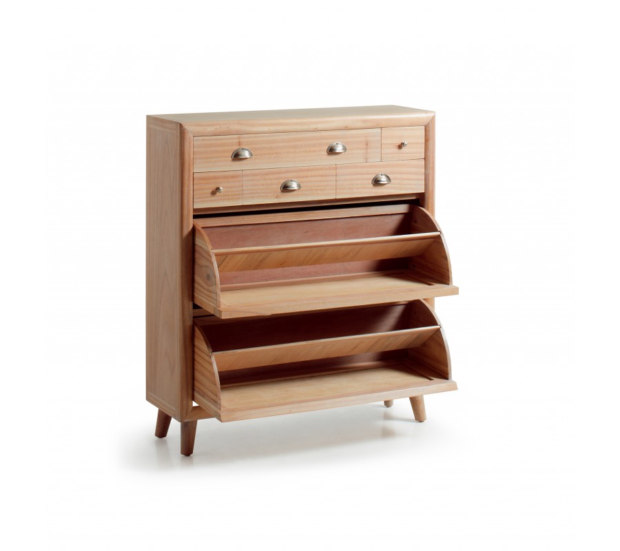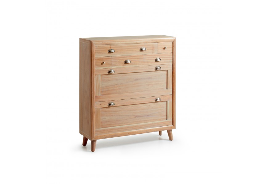 Štýlový jedinečný botník z kolekcie BROMO. Kolekcia nábytku BROMO predstavuje retro štýl z koloniálneho masívneho dreva MINDI, nožičky nábytku pripomínajúce 60 roky so štýlovými úchytmi. Autentické otváranie dvierok a šuplíkov. Vhodný do kombinácie s farebnými stenami, alebo tapetami so vzormi.