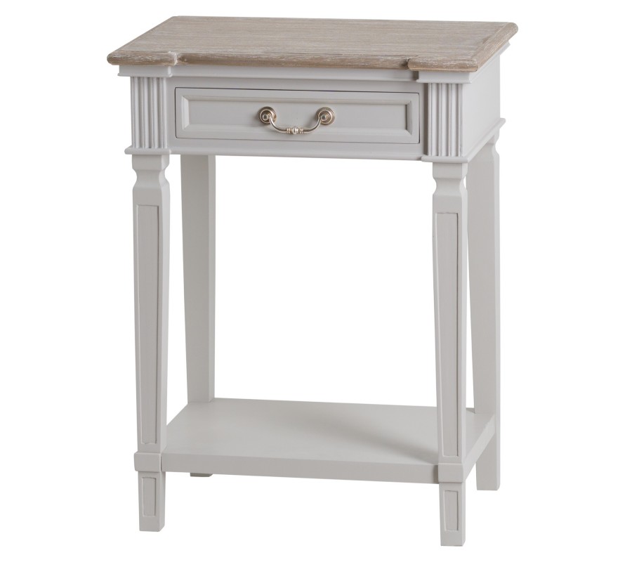 Dizajnový vidiecky stolík z kolekcie kvalitného masívneho nábytku Liberty s provensálskym nádychom sa pýši distingvovanou kombináciou bielej a jemnej hnedej farby masívneho dreva. Jedna zásuvka Vám poskytne bonusový úložný priestor a oko pohladí jej vkusná rukoväť.