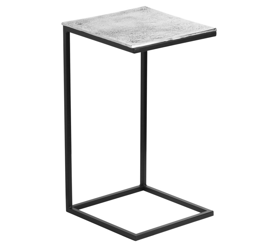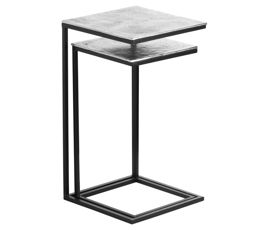 Set dvoch dizajnových príručných stolíkov z našej kolekcie FARRAH Vás jednoznačne zaujme svojím jedinečným prevedením industriálnych prvkov. Sada je tvorená dvoma príručnými stolíkmi, ktoré do seba zapadajú. Hranatý rám stolíkov je vyrobený z kvalitného kovu v čiernej farbe. Autentickosť týmto kúskom dodáva unikátna vrchná doska osadená na čiernom kovovom ráme, a to vďaka svojmu štruktúrovanému povrchu s jamkami, ktorý bol docielený ručným odlievaním hliníka. Príručné stolíky budú dokonale dopĺňať Váš moderný či industriálny domov.