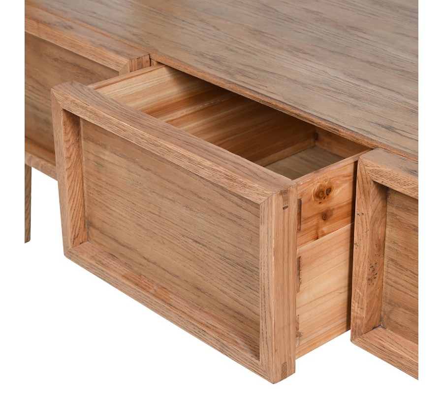 Luxusný masívny dubový vešiak Amber v hnedej farbe s tromi zásuvkami v rustikálnom štýle 179 cm