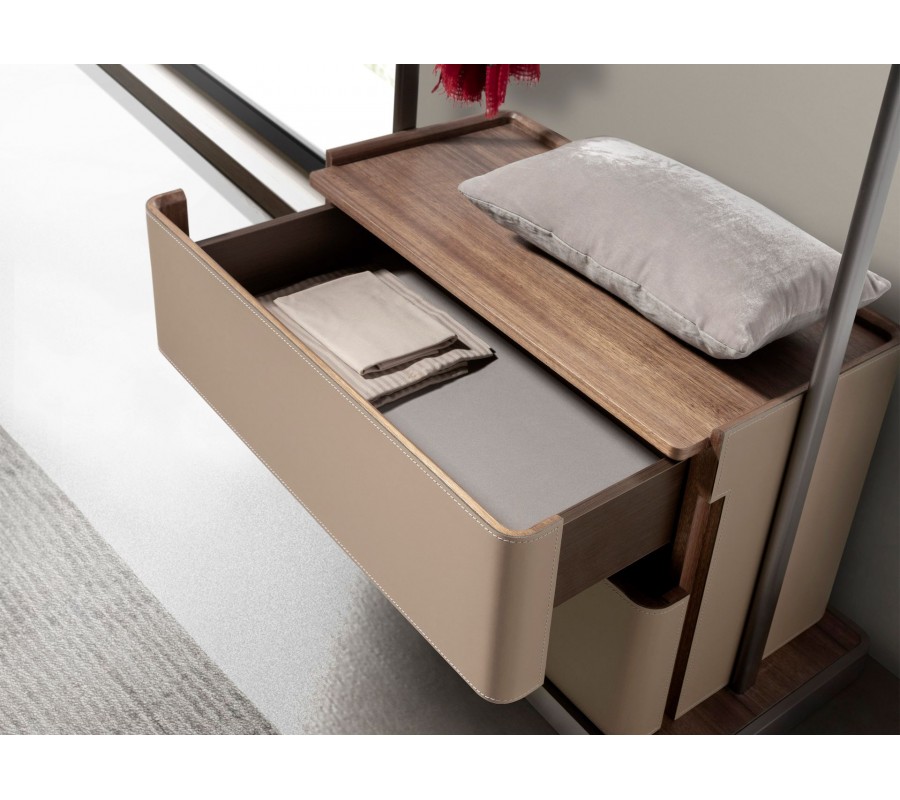 Lavica má vo vrchnej časti vyvýšené okraje, takže je praktická aj ako odkladacia plocha. Obsahuje dve nad sebou umiestnené zásuvky s minimalistickým dizajnom bez úchytiek, ktoré poskytnú praktický priestor, napríklad na odkladanie obuvi. Ľahko ich otvoríte pomocou dvoch zvislých zárezov na bokoch.