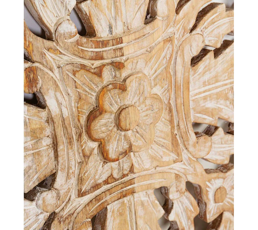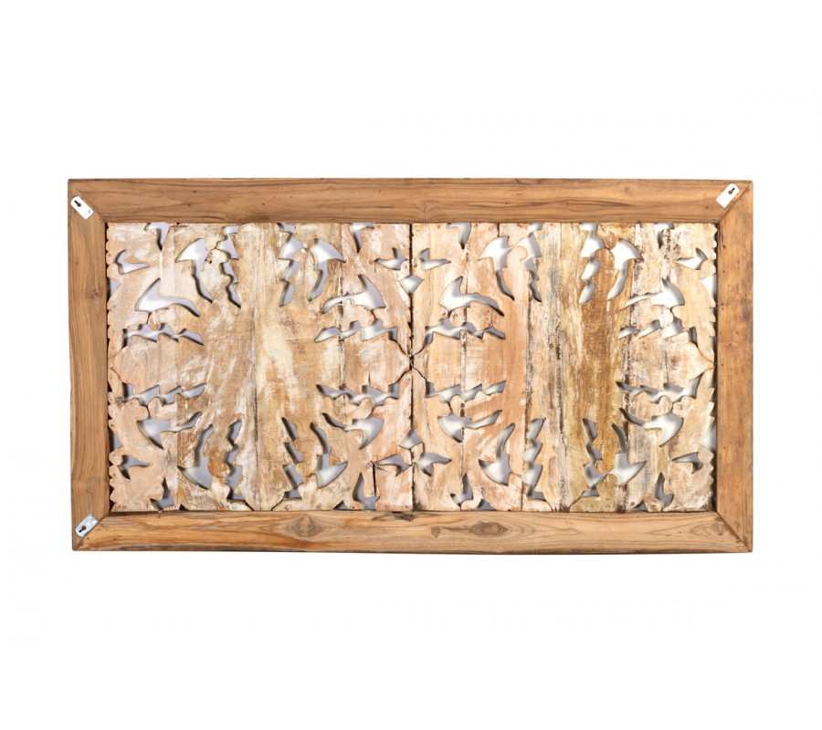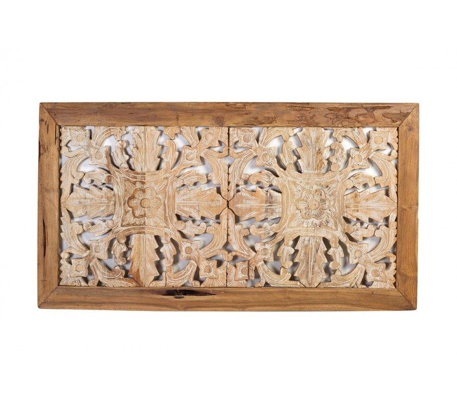 Túžite cestovať a prebúdzať sa na nových fascinujúcich miestach? Kúsok exotiky a vánok cudzokrajných kultúr môžete mať priamo nad hlavou! Vďaka ručne vyrezávanému čelu postele sa vaše sny jednoducho pretavia do reality. Na obdiv sa ponúka jeho obdĺžniková konštrukcia z exoticky pôsobiaceho dreva s unikátnou výraznou štruktúrou. Orámovanie čela postele je v prirodzenej stredne hnedej farbe, zatiaľ čo ručne dopĺňané ornamenty majestátne rozpínajúce sa stredom čela sú upravené povrchovým bielym náterom, ktorý svojim ošúchaným efektom zvýrazňuje línie dekoru a umocňuje dojem originality kúsku. Ornamenty sú delené na dva bloky spájajúce sa v strede čela. Na stenu sa uchytáva pomocou úchytiek na zadnej strane čela, oň sa následne prichytáva matrac s roštom. Vynikne v kombinácii s masívnymi nočnými stolíkmi s kovovými mohutnými úchytmi a toaletným stolíkom v koloniálnom štýle v spálni so slonovinovými vankúšmi či etno baldachýnom.