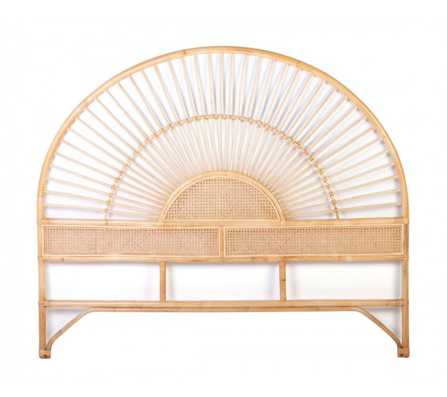 Štýlové čelo postele Semain upúta svojím dekoratívnym prevedením s naturálnym nádychom. Oblúkovitý tvar pozostáva z konštrukcie z kvalitného ratanového dreva a jeho prevedenie vytvára dojem slnka a lúčov. Lúčovitá konštrukcia sa strieda so štýlovým viedenským výpletom vypĺňajúcim spodnú časť čela. Celé čelo sa nesie v príjemnej svetlohnedej farbe, ktorá rozžiari vaše priestory a vnesie do nich príjemný naturálny nádych. Zdobenie čela Semain je inšpirované etno štýlom, a prírodný materiál a prevedenie mu dodáva vidiecky nádych. Vhodne tak doplní masívne posteľné rámy vo vidieckych, rustikálnych i moderných priestoroch spální či hosťovských izieb. Čelo postele Semain so šírkou 165cm je ideálnym na doplnenie manželskej postele v kombinácii s masívnymi drevenými nočnými stolíkmi, prírodným tkaným kobercom či ľanovou posteľnou bielizňou a vankúšmi.