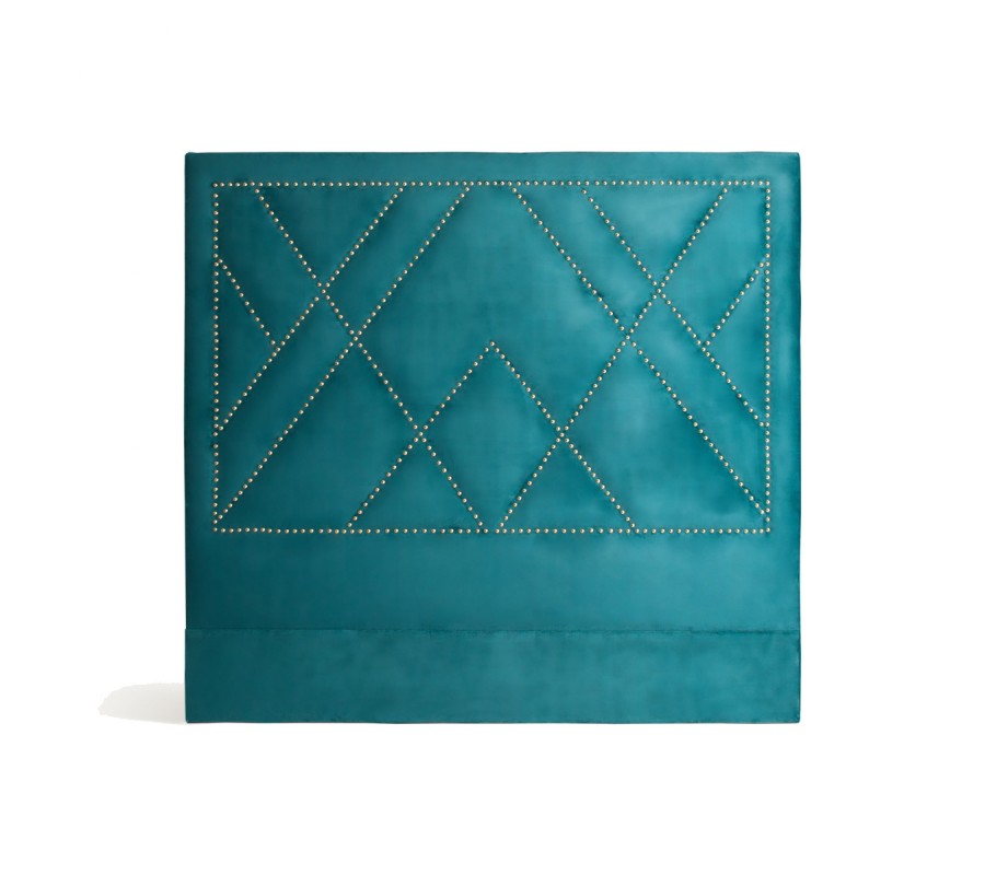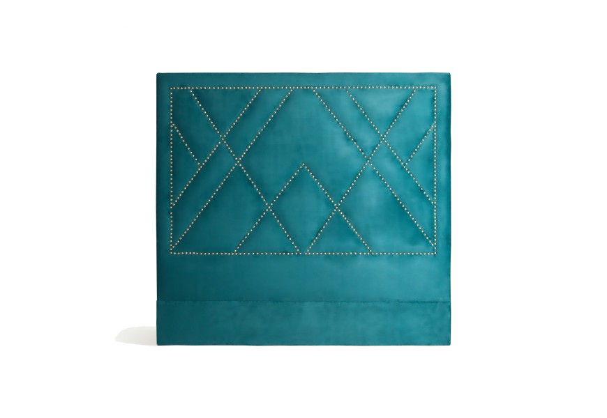 Exkluzívne moderné čelo postele Azure s tyrkysovým zamatovým poťahom a vybíjaným zdobením 160cm