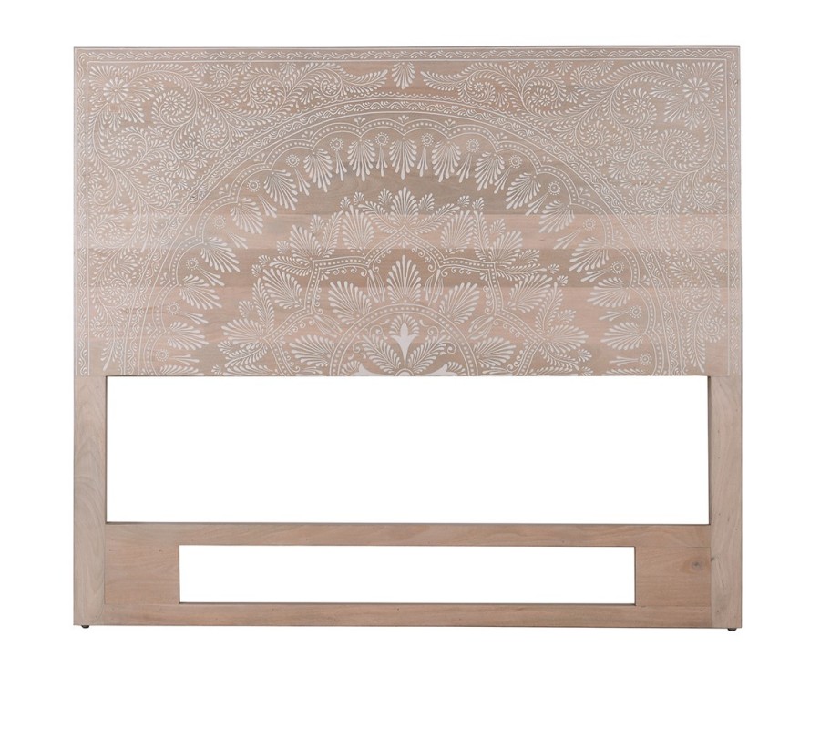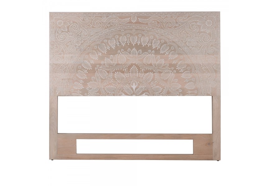 Luxusné orientálne čelo postele Saraswati s ručne maľovanou mandalou zo svetlého mangového dreva 162 cm