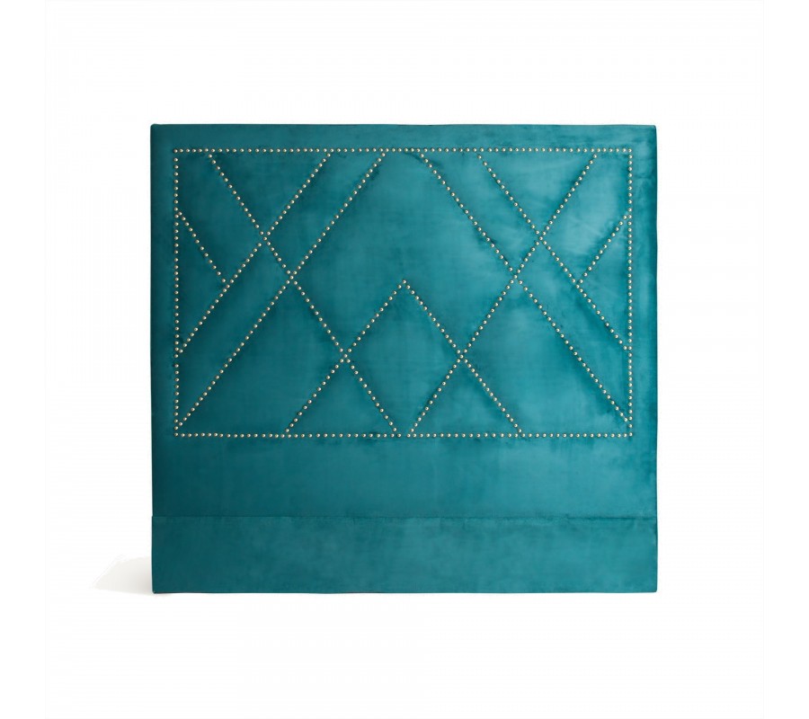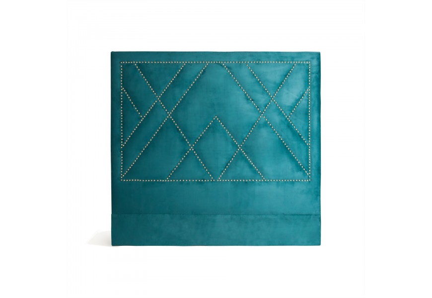 Luxusné tyrkysové čelo postele Azure v art deco štýle s ozdobným kovovým vybíjaním v zlatej farbe 190 cm