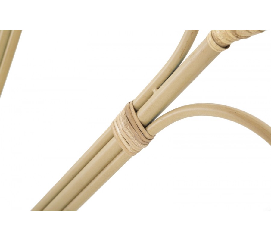 Kovová konštrukcia má špeciálny náter s jemnými líniami, ktoré imitujú ratanový dizajn, vďaka čomu sa vizuálne ešte viac približuje prírodným materiálom.