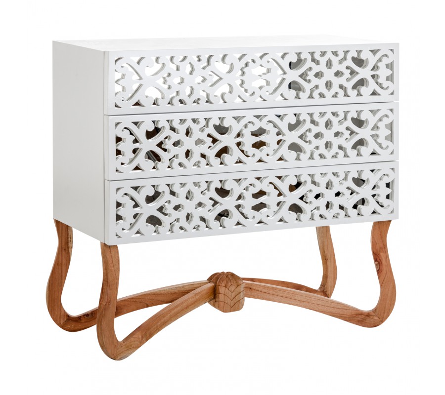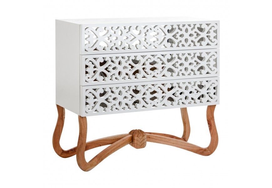 Komoda z kolekcie nábytku BLANCO NATURAL. Inšpirovaná ázijským dizajnom. Komoda je vyrobená z masívneho dreva Mindi.