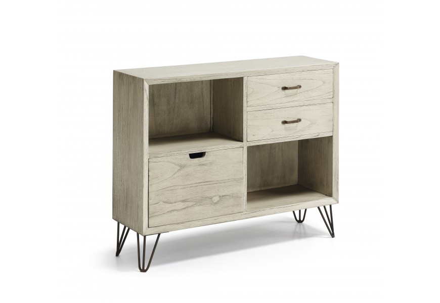 Vintage biela retro komoda MURIA s tromi zásvukami a s kovovými nožičkami