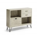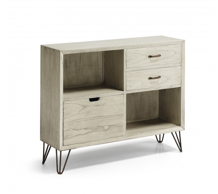 Štýlová retro komoda z kolekcie MURIA je jednoduchá ale elegantná komoda vyrobená z masívneho dreva mindi. Komoda ponúka úložný priestor vo forme troch zásuviek a dvoch poličiek. Komoda je štýlovo doladená kovovými čiernymi nožičkami, ktoré jej dodávajú retro vzhľad. Komoda svojou bielou farbou s vintage opracovaním pripomínajúcim opotrebovanie časom sa hodí do moderných interiérov, kde dodá nádych času.