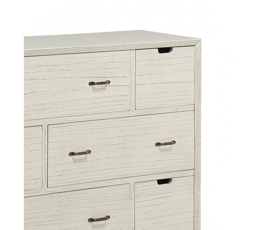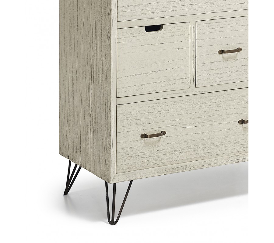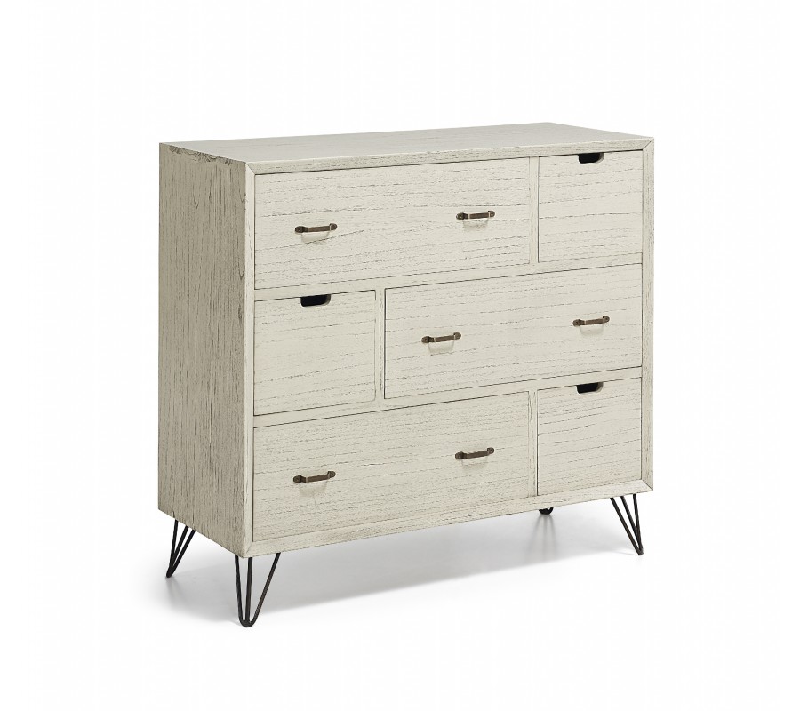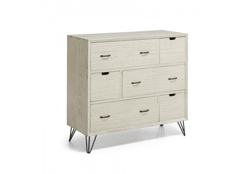 Luxusná retro komoda so šiestimi zásuvkami z kolekcie MURIA je jednoduchá, ale elegantná komoda vyrobená z masívneho dreva mindi.