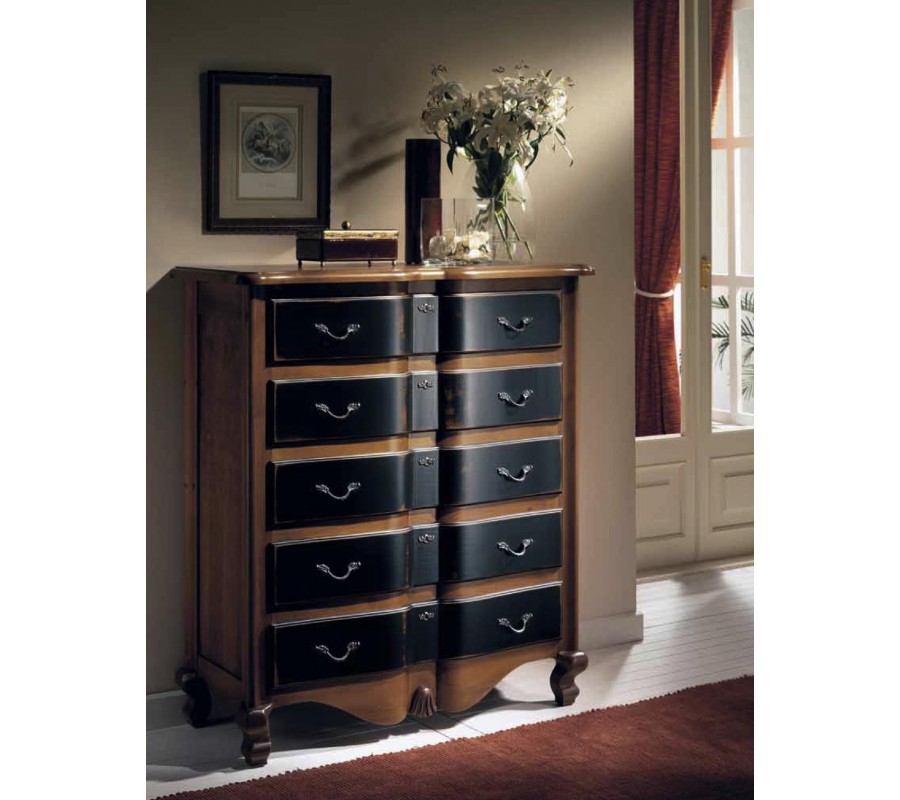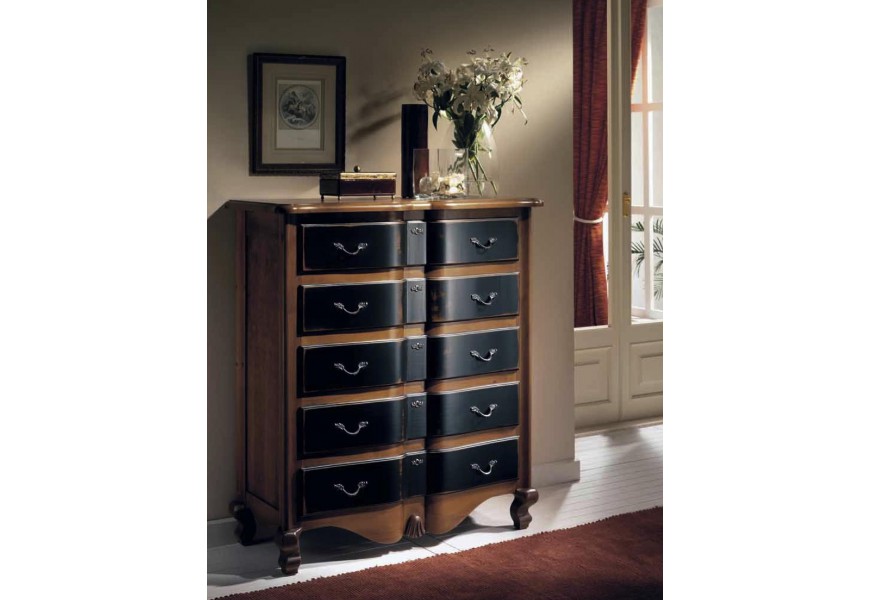 Luxusná komoda Nuevas formas z tvrdého dreva vysokej kvality je kúskom reprezentujúcim rustikálny štýl s ručne dorábanými dobovými prvkami. Je vhodná najmä pre milovníkov klasického nábytku, ktorí si túžia doma vytvoriť jedinečné starožitné čaro. Komoda disponuje praktickými zásuvkami ponúkajúcimi bohatý úložný priestor. Luxusné vyrezávanie v spodnej časti a na nožičkách dodá vašej obývačke či spálni skutočne luxusný rustikálny nádych. Na výber ponúkame niekoľko farebných odtieňov a povrchov, ktoré sú k dispozícií vo vzorkovníku aj v našom showroome. Vďaka flexibilite výrobcu je možné vyrobiť tento produkt na mieru.