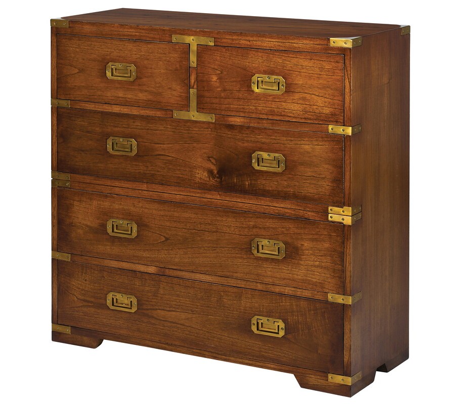 Vidiecka luxusná komoda Dark Rich je vyrobená z prírodného dreveného masívu v čokoládovohnedom prevedení. Doplnená je zo starozlatých prvkov. Vďaka povrchovej úprave vinikla štruktúra dreva, ktorú je cítiť aj na dotyk. Ako úložný priestor poslúži päť zásuviek. Menšie poslúžia na uskladnenie kozmetiky, poprípade menších predmetov a väčšie pre bielizeň. Táto komoda zapadne do vidiecky zariadenej spálne, pôsobí impozantne. Zaraďuje sa do koloniálneho nábytku.
