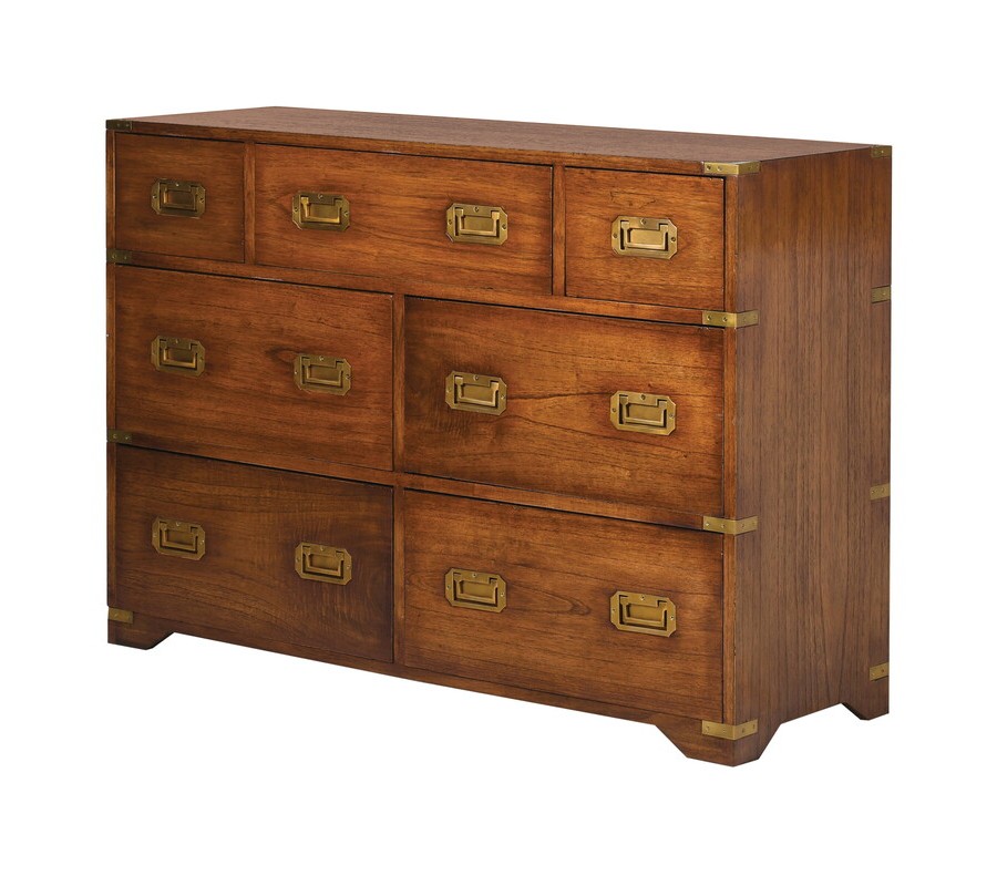 Vidiecka luxusná komoda Dark Rich je vyrobená z dreveného masívu v čokoládovohnedom prevedení. Doplnená je zo starozlatých prvkov. Vďaka povrchovej úprave vinikla štruktúra dreva, ktorú je cítiť aj na dotyk. Ako úložný priestor poslúži sedem zásuviek. Menšie poslúžia na uskladnenie kozmetiky, poprípade menších predmetov a väčšie pre bielizeň. Táto komoda zapadne do vidiecky zariadenej spálne, pôsobí impozantne. Zaraďuje sa do koloniálneho nábytku.