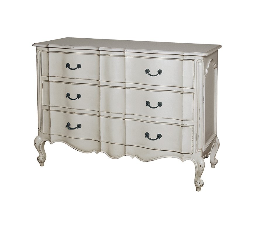 Nádherná komoda Crema vo vidieckom štýle sa zaručene postará o skrášlenie a rozžiarenie vášho domova. Jej jemná svetlá sivá farba sa dá ľahko kombinovať a originálne vyrezávané zdobenie vo vašej spálni či obývačke rozhodne vynikne.