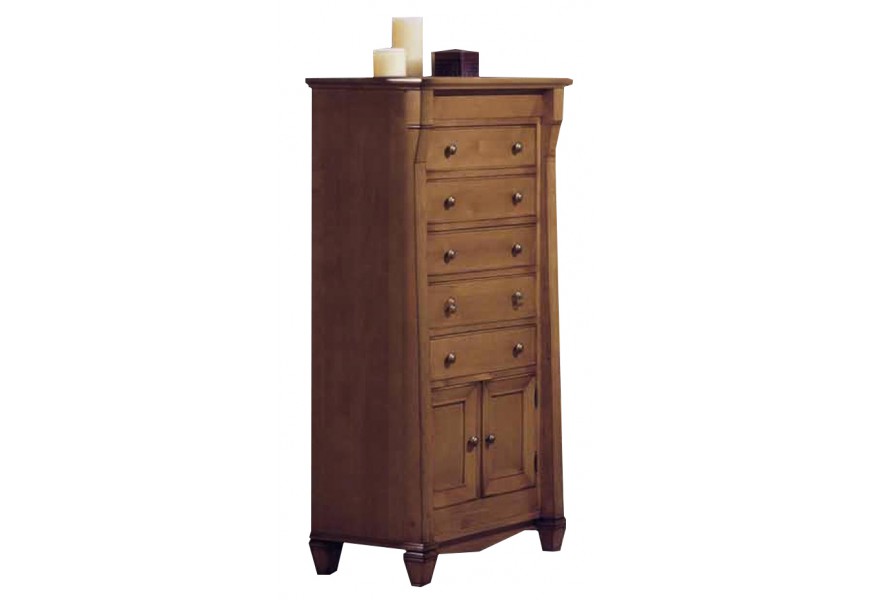Koloniálna vysoká komoda Frontes z dreva s piatimi zásuvkami a dvierkami 135cm