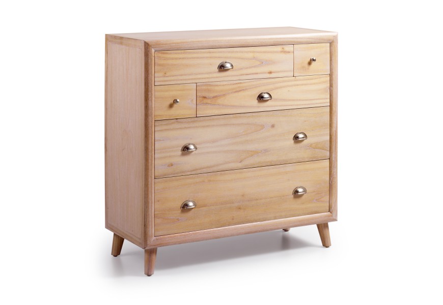 Luxusná zaujímavá zásuvková komoda z kolekcie BROMO. Kolekcia nábytku BROMO predstavuje retro štýl z koloniálneho masívneho dreva MINDI, nožičky nábytku pripomínajúce 60 roky so štýlovými úchytmi. Autentické otváranie dvierok a šuplíkov. Vhodný do kombinácie s farebnými stenami, alebo tapetami so vzormi.