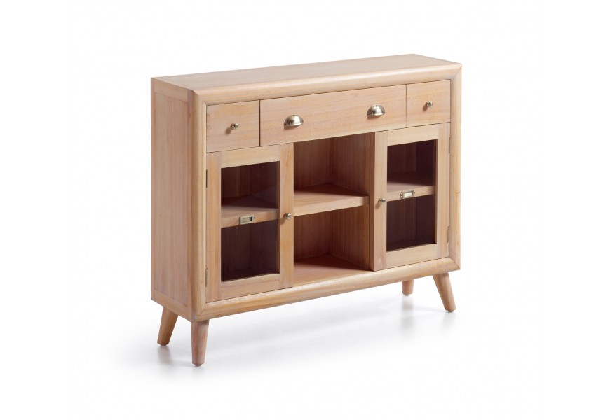 Štýlová luxusná zaujímavá konzola z kolekcie BROMO. Kolekcia nábytku BROMO predstavuje retro štýl z koloniálneho masívneho dreva MINDI, nožičky nábytku pripomínajúce 60 roky so štýlovými úchytmi. Autentické otváranie dvierok a šuplíkov. Vhodný do kombinácie s farebnými stenami, alebo tapetami so vzormi.