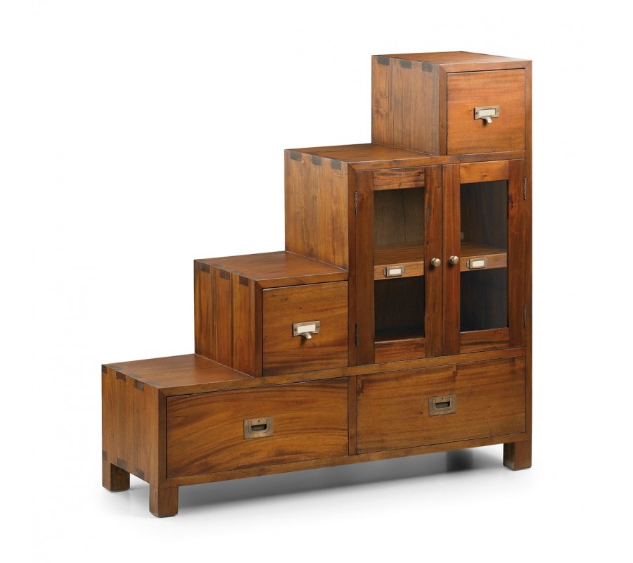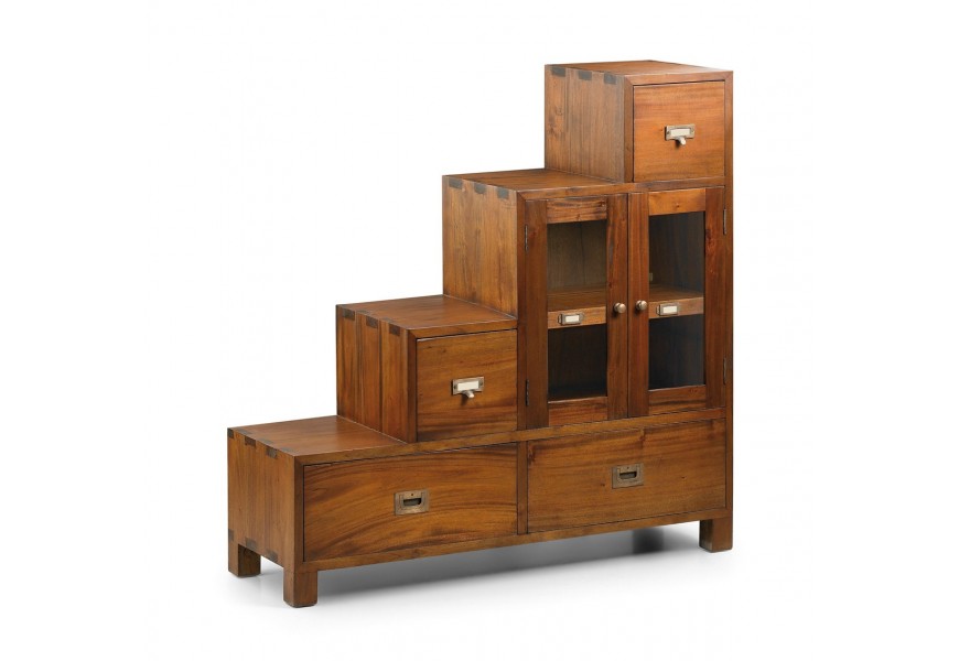 Koloniálna luxusná skrinka Flamingo z masívu v tvare schodov pravá 100cm