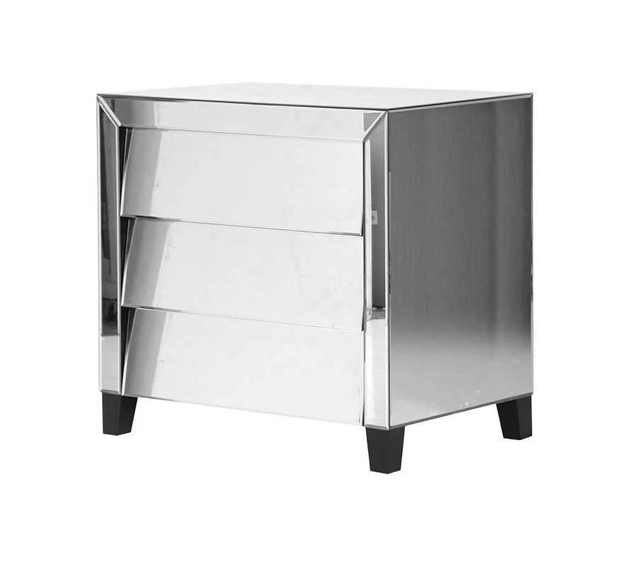 Štýlový moderná komoda Granada s tromi zásuvkami je jedinečným moderným kúskom doplnený o zrkadlový efekt a čierne detaily. Štýlová komoda zaujme na prvý pohľad svojím štýlovým dizajnom a originálnymi troma šikmými zásuvkami, ktoré poskytujú množstvo úložného priestoru. Doplňte štýlovú modernú komodu Granada s tromi zásuvkami o ďalšie kúsky z kolekcie nábytku Granada.