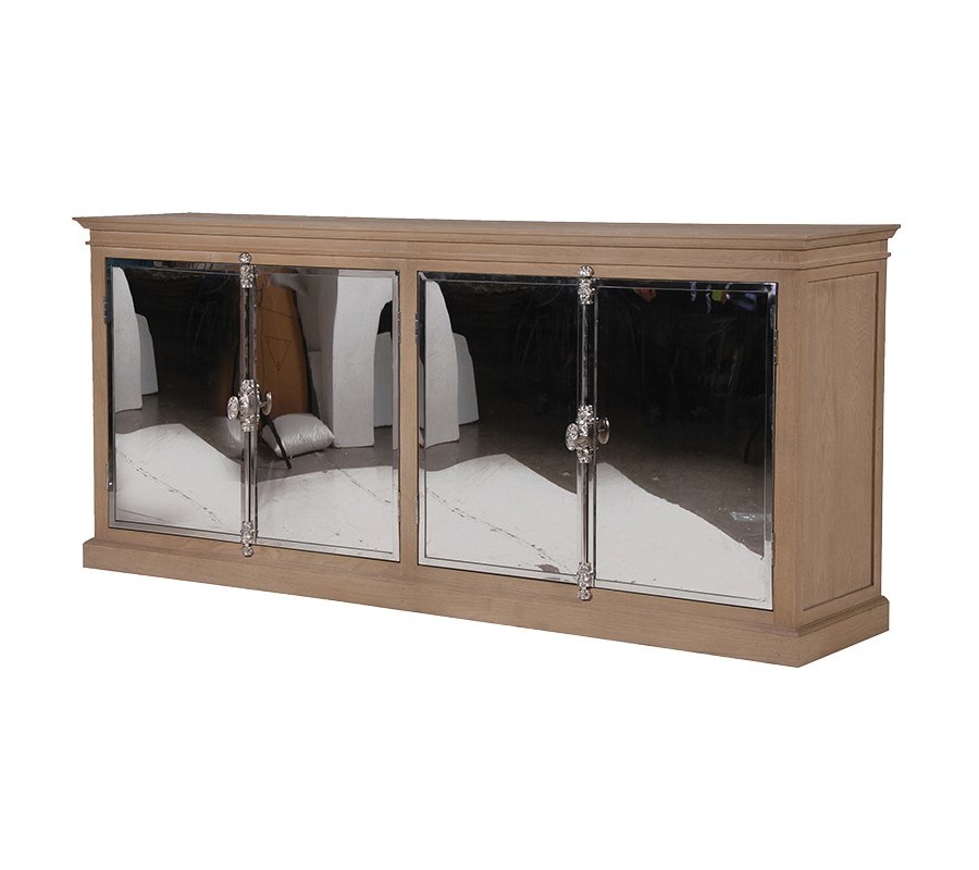 Priestranná komoda Norfolk je vyrobená z kvalitného dubového dreva v bledo hnedom sfarbení, ktoré necháva vyniknúť prirodzenú kresbu a štruktúru dreva. Prírodný vzhľad konštrukcie je doplnený štvoricou výrazných dvierok s chrómovým povrchom, za ktorými sa ukrývajú priestranné poličky. Lesk chrómových dvierok je doplnený dekoratívnymi úchytmi z kovu. Rafinované spojenie masívneho prírodného materiálu so zrkadlovým chrómovým leskom vnesie do každého interiéru jedinečný pôvab a nádych luxusu. Komodu Norfolk môžete umiestniť v priestoroch spálni, tvrdý povrch sa skvele doplní s textíliami v podobe posteľných prehozov, závesov či mäkkých kobercov. Môžete ju však použiť aj ako príborník v luxusnej jedálni alebo ako praktickú skrinku vo svojej obývačke hale či štýlovej pracovni.