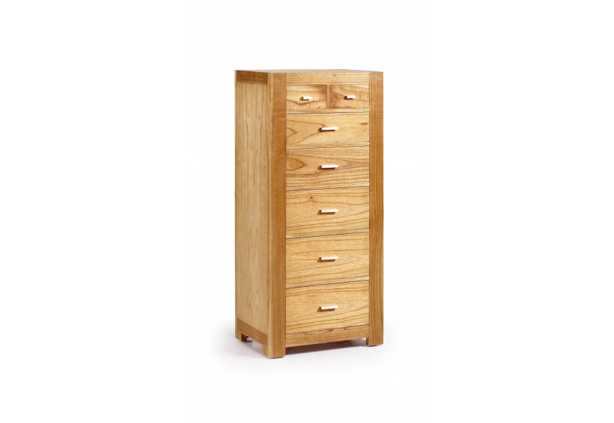 Luxusná štýlová komoda vysoká so siedmimi zásuvkami z kolekcie Natural - nábytok v koloniálnom štýle z masívneho dreva MINDI je vhodný tak pre moderné ako aj pre rustikálnejšie priestory. Pre svoju jednoduchosť sa hodí všade. Svojou kvalitou však splní očakávania.