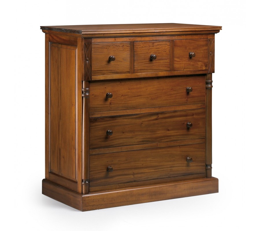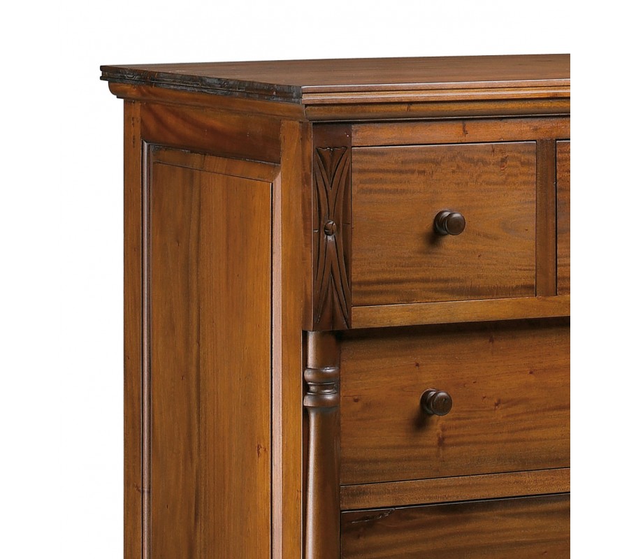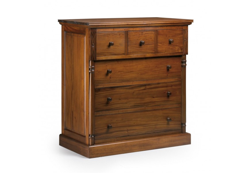 Koloniálna luxusná komoda M-VINTAGE z masívneho dreva hnedej farby so šiestimi zásuvkami 110cm