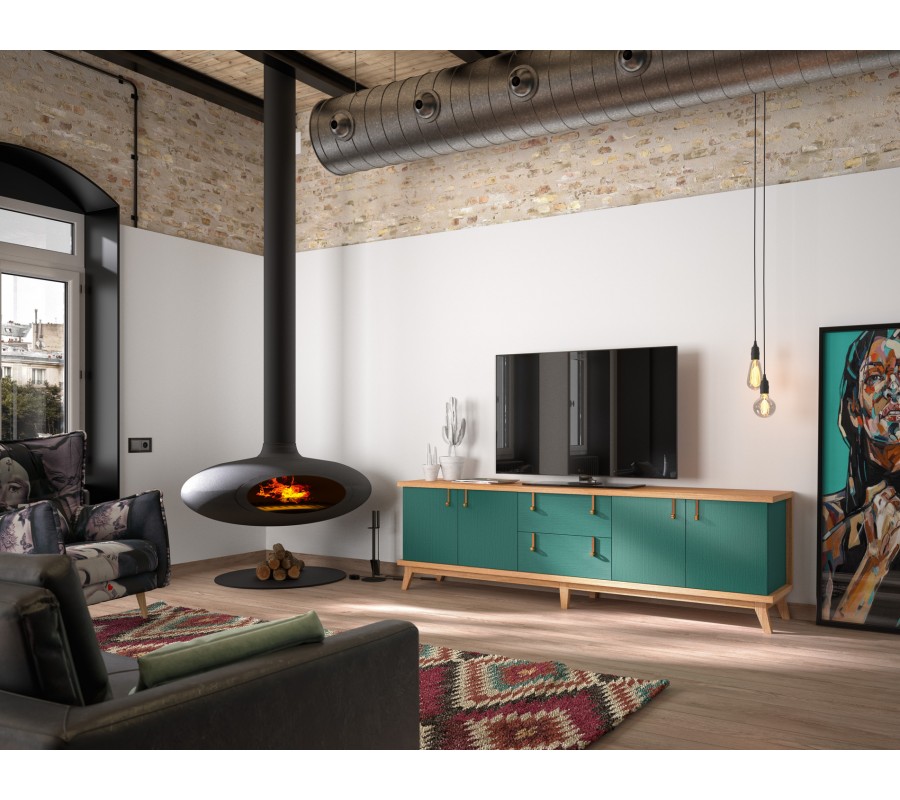 Luxusný TV stolík Sajonia na nožičkách so zásuvkami a dvierkami 224cm