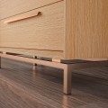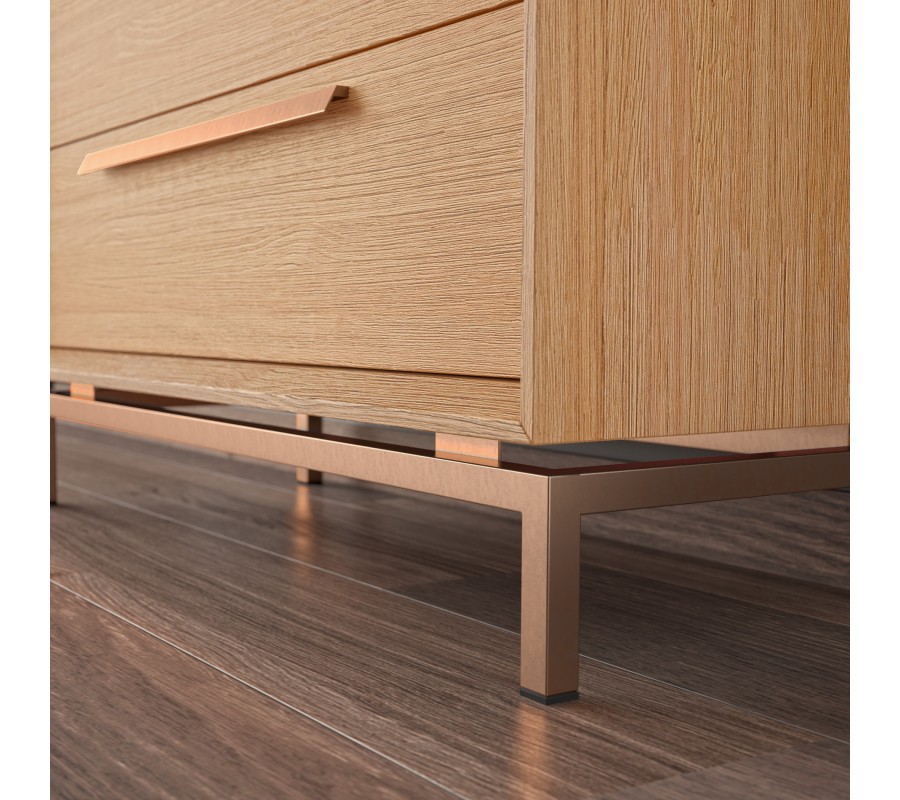 Štýlová a mimoriadne nadčasová kombinácia masívneho dreva s kovovými prvkami luxusnej vitríny Estoril je podčiarknutá jej moderným tvarom. Čisté línie masívnych častí vitríny sú doplnené rafinovanými masívnymi alebo kovovými nohami a úchytmi. Kovové prvky sú k dispozícii v troch farebných prevedeniach. Celkový dizajn vitríny dotvoríte výberom farebného prevedenia kovových častí, ktoré je k dispozícii v troch odtieňoch. Okrem farby kovových prvkov je možné si zvoliť aj farebný variant dreva. Vďaka množstvu farebných kombinácii si môžete zvoliť tú pravú práve pre váš interiér. Vitrína Estoril obsahuje praktický úložný priestor v podobe dvoch zásuviek a poličiek, ktoré sú ukryté za sklenenými a masívnymi dvierkami. Vitrína Estoril sa stane dokonalým doplnením vašich luxusných obývačiek, jedální, hál či spální a odporúčame ju kombinovať s prvkami z našej rovnomennej kolekcie.