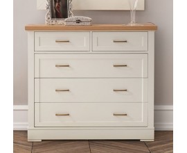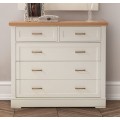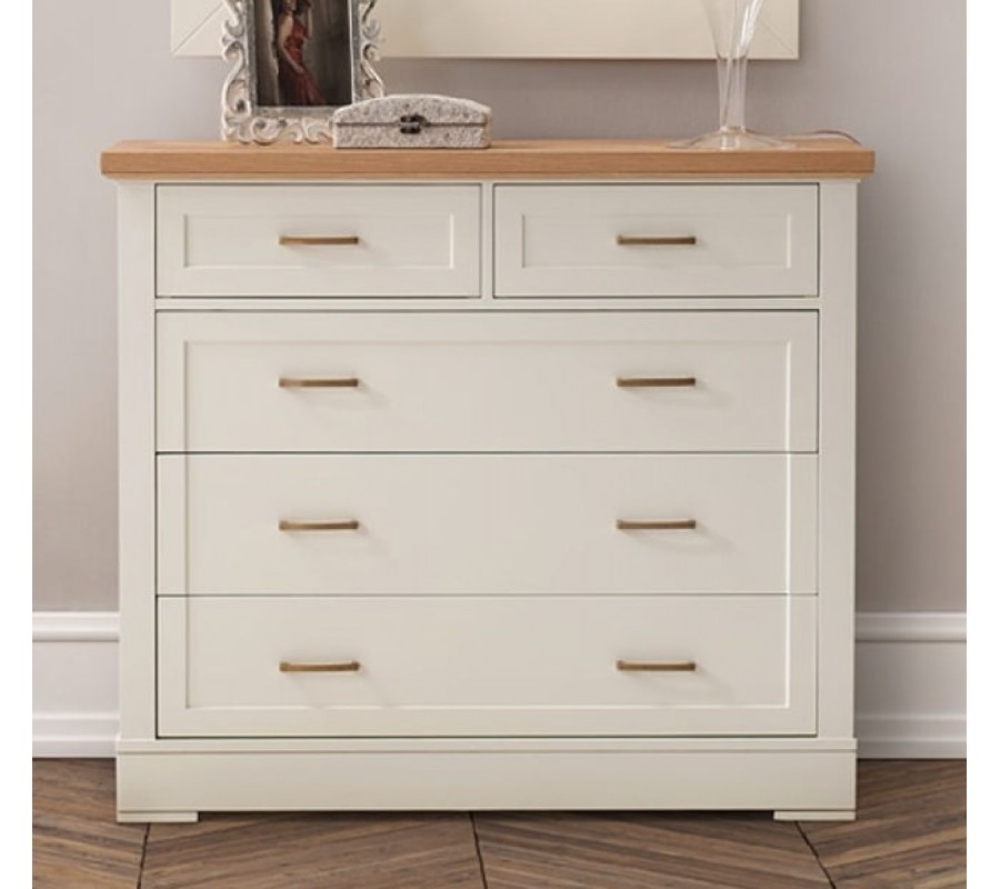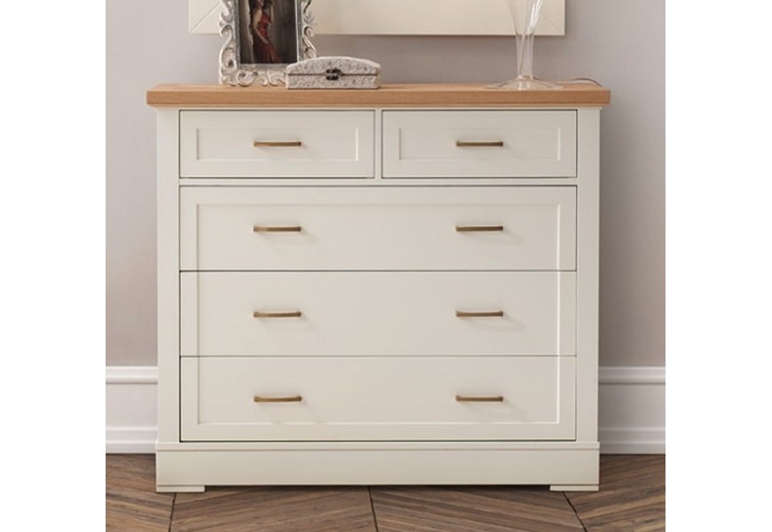 Jedinečná komoda s piatimi zásuvkami je vyrobená z kvalitného dreveného masívu, ktorého prevedenie je dostupné v dvoch farebných možnostiach, tým pádom dokáže perfektne zapadnúť do štýlovo odlišných interiérov veľmi jednoducho. Komoda zapadne do provensálskeho i moderného štýlu bývania a poskytuje množstvo úložného priestoru.