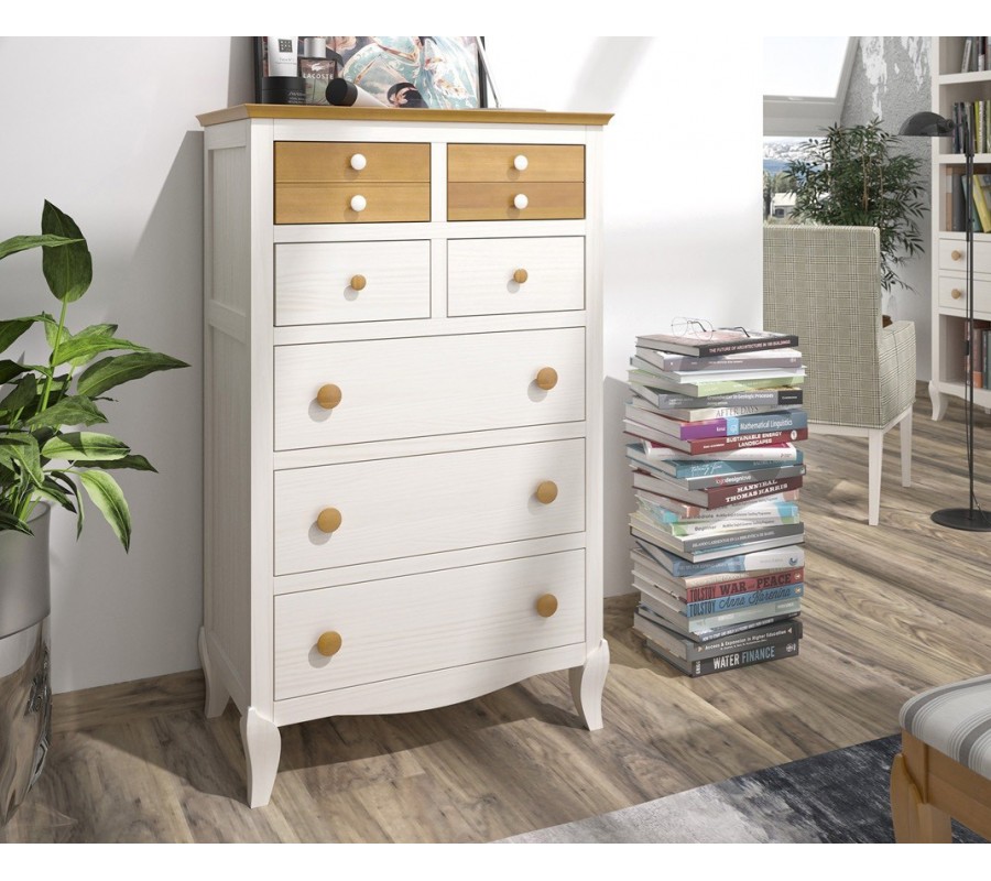 Luxusná moderná vysoká komoda Basilea z masívu so siedmimi zásuvkami 125cm