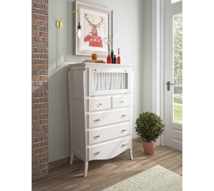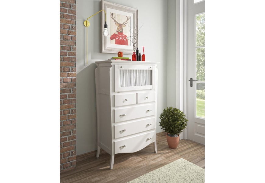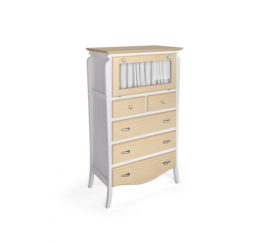 Luxusná vysoká komoda z kolekcie MEDITERRÁNEO je predstaviteľom kvalitného, nadčasového nábytku s vyrezávanými, rustikálnymi prvkami. Okrem elegantného dizajnu komoda ponúka praktický úložný priestor v podobe piatich zásuviek vrchnej police s presklenými, vyklápacími dvierkami. V prípade, ak požadujete produkt vo viacfarebnom prevedení (tak ako môže byť zobrazené na obrázku), prosím špecifikujte Vašu požiadavku podľa vzorkovníka dreva do poznámky objednávky pri jej potvrdení alebo nás kontaktujte.