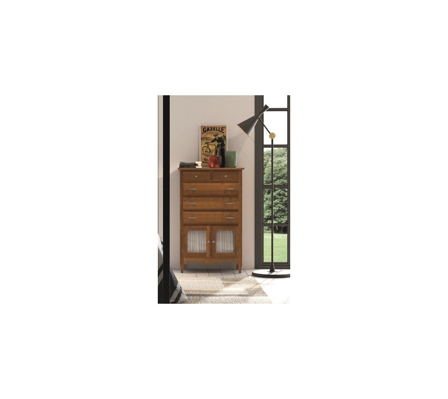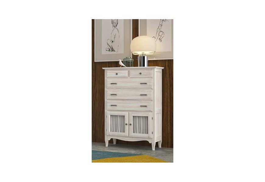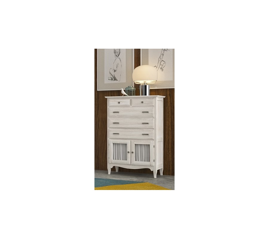 Luxusná vysoká komoda z kolekcie nábytku FONTANA zaujme svojim kvalitným spracovaním a elegantným, nadčasovým dizajnom v rustikálnom nádychu. Komoda okrem príjemného vzhľadu ponúka tiež bohatý úložný priestor v podobe piatich zásuviek a skrinky s dvierkami. V prípade, že si prajete komodu v špecifickej farebnej kombinácii, stačí Vašu požiadavku napísať do poznámky pri vyplňovaní objednávky. Nezabudnite taktiež uviesť, či si prajete plné alebo sklené dvierka.