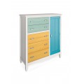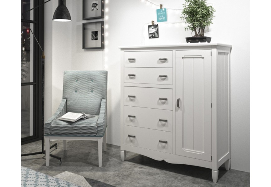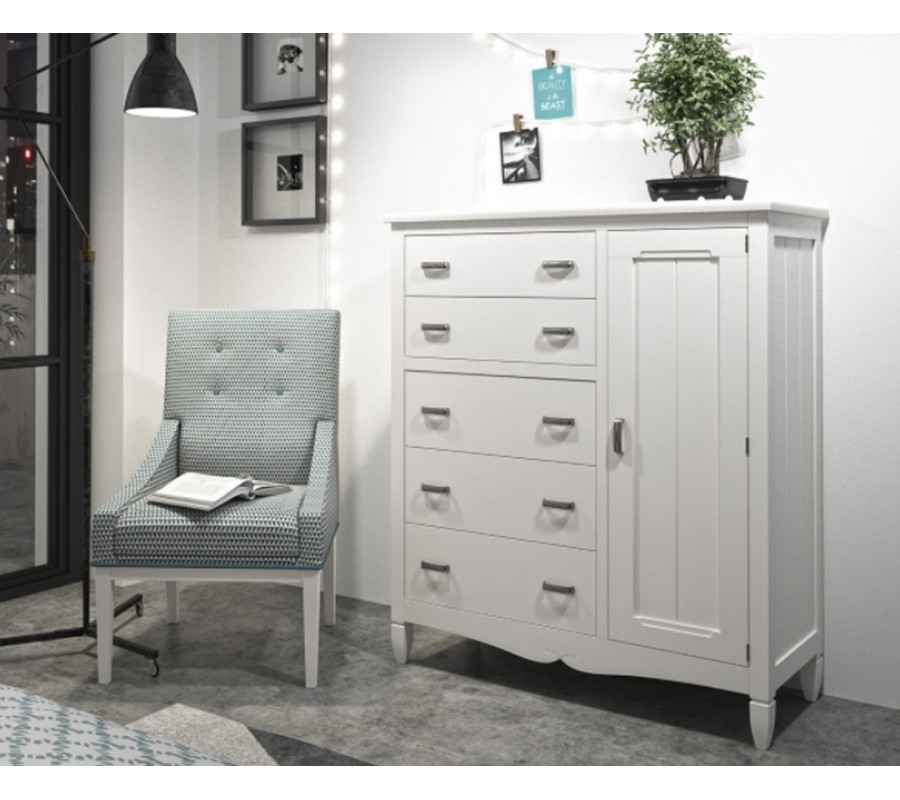 Dizajnová a nadčasová vysoká komoda z kolekcie španielskeho nábytku Amberes v modernom prevedení je nádherným príkladom kvalitného masívneho nábytku. Nadčasová komoda Amberes je vyrobená z masívneho borovicového dreva a pýši sa veľmi jemným a minimalistickým dizajnom, ktorého farebné prevedenie Vám dáva voľnú ruku a komodu môžete prispôsobiť už existujúcemu interiéru. Jedinečná komoda Amberes disponuje piatimi priestrannými zásuvkami a jednodverovou skrinkou, ktorá ukrýva police, ktoré poskytnú dostatok úložného priestoru a sú obohatené o vkusné metalické horizontálne rukoväte s minimalistickým prevedením. Moderná komoda je zasadená na kvádrových masívnych nožičkách, čo ju vizuálne nadnáša a poskytuje priestoru, do ktorého ju umiestnite vzdušnosť. Masívnu komodu Amberes odporúčame kombinovať najmä s luxusnými kobercami a príjemnými materiálmi ako ľan či kožušina v rámci nadčasových spální či obývačiek.